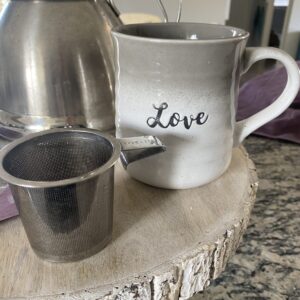 1) I either use a mason jar and 1 tablespoon of herbs, then strain it with a strainer into a tea cup