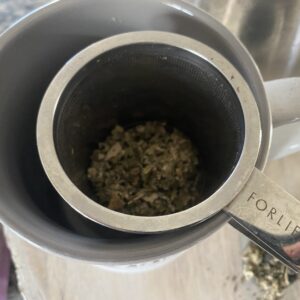 You want the water hot not boiling. These are delicate leaves not barks, so don’t boil or decoct for 30-60 min.