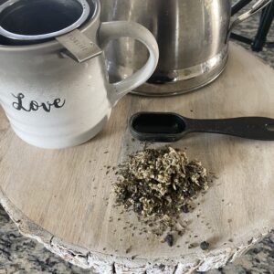 Steep herbs in a tea kettle or pot of hot water (approx. 1 liter or 32 oz) for 30-60 min then strain herbs. 2 Cups per Day for 1 week or as needed every 30 min.