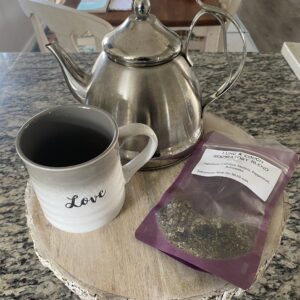 “This tea is considered beneficial for pulmonary disturbances – coughs, asthmas, bronchitis and hay fever.” (Herbal Tea Gardens by Marietta Marcin)